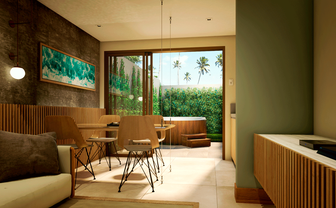 Localizado à beira-mar de Porto de Galinhas, ao lado do Enotel, este empreendimento oferece lazer no segundo pavimento, incluindo playground e espaço infantil, depósitos privativos, bicicletário, piscina com vista panorâmica, e uma loja de conveniência integrada.