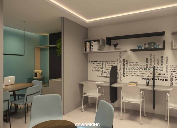 Coworking, Sala de Reunião e Sala de Estudos: Espaços ideais para quem trabalha ou estuda de casa.