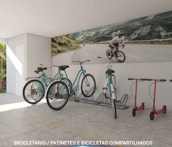 Bicicletário com Bicicletas e Patinetes Compartilhados: Mobilidade sustentável ao seu alcance.