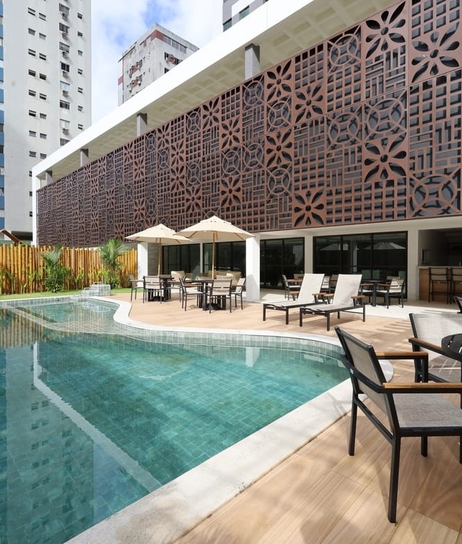 Terraço com Deck Bar: Desfrute de momentos relaxantes com uma vista espetacular.