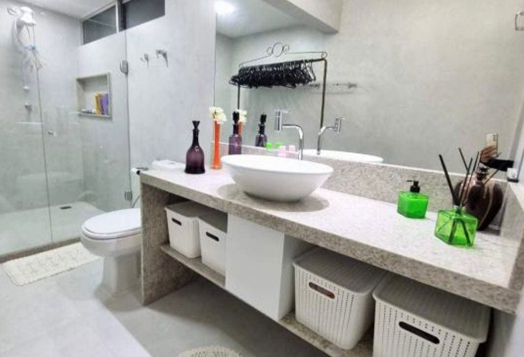 3 quartos, sendo 2 suítes com ar-condicionado split: Conforto e privacidade garantidos para toda a família.